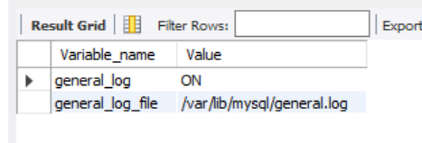 [mysqld] general_log=ON log_output=FILE general_log_file=/var/lib/mysql/general.log설정이 되어 있는지 확인해보려면, 다음 명령어를 사용하여 알 수 있다.